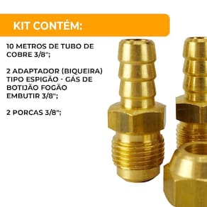 Kit Cano De Cobre 3/8 Gás De Cozinha 10m + Bico Para Mangueira 1 Unidade Kit Cano de Cobre 3/8 Gás de Cozinha 10m + Bico para Mangueira 1 unidade 1129 + 613 + 1254 Kit Cano de Cobre 3/8" Gás de Cozinha 10m + Bico para Mangueira