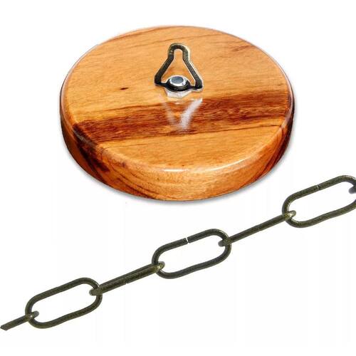 Kit Canopla para pendentes e lustres com acabamento em madeira maciça nobre e corrente ouro velho. Ideal para composições rústicas e sofisticadas, é perfeito para salas, quartos e áreas de estar. O conjunto une durabilidade, estilo e fácil instalação, proporcionando charme e aconchego ao ambiente com um toque colonial e elegante.