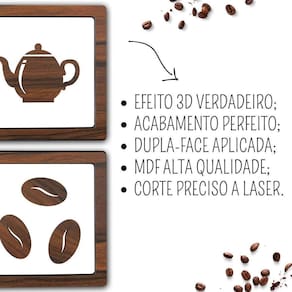 CONTEÚDO DA EMBALAGEM: 04 Quadros Mdf Cantinho do Café 3d.