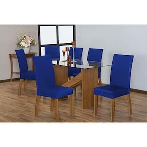 Kit Capa De Cadeira Jantar Liso Elástico 04 Peças Azul Royal Contém: 04 – capa de cadeira de malha com elástico .