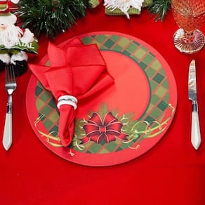 Kit Capa De Sousplat Estampado Natalina C/ Guardanapos Mesa Posta Jogo Americano 04 Lugares - Decoração Natal Cor Laço Xadrez