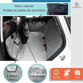 - Impermeável; - Lavável na máquina de lavar; - Alça ajustável; - Abas laterais para mais proteção; - Tamanho universal para todos os tipos de carros; - Aconchegante e confortável; - Abertura com 2 entradas para o cinto de segurança; - Fechamento com zíper; - 2 Bolsos.