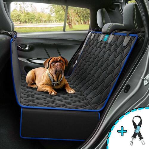 Kit Capa Pet Protetora de Banco Traseiro Impermeavel Azul + Cinto de Segurança