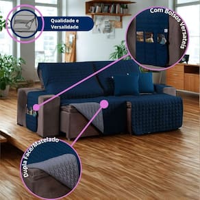 Kit Capa Protetora Sofá Retrátil 2,20m Shield Dupla Face + Almofadas Variação: Azul Marinho e Cinza Bem-vindo a à Atual Ecommerce - há mais de 4 anos oferecendo conforto e estilo para o seu lar Se você busca proteger seu sofá retrátil com sofisticação e praticidade, o Kit Capa Protetora de Sofá Retrátil Shield 2,20m Dupla Face com Almofadas é a escolha perfeita. Feito com tecido resistente, design moderno e caimento impecável, ele transforma sua sala com elegância. Seu sofá merece proteção e beleza em um só produto. Manchas, pelos, sujeiras e desgaste são desafios do dia a dia - especialmente com pets ou crianças. Com o Protetor Shield, você preserva a aparência do seu sofá e ainda renova a decoração da sua casa. Com dupla face e almofadas inclusas, o visual da sala muda conforme seu gosto. O que dizem nossos clientes satisfeitos: protege e valoriza o sofá. A cor dupla face me permite variar sempre. muito bonito e de ótima qualidade. Meu sofá parece novo. fácil de colocar e os bolsos são muito úteis para o controle e celular. Especificações Técnicas: Modelo: Shield Retrátil com Almofadas Para sofás retráteis com assento de até 2,20 metros Medidas Aproximadas: 2 partes de 1,10m x 2,40m assento retrátil 2 braços: 50cm x 90cm cada Medida total com os braços: 4,00m x 2,40m 2 Capas de Almofada: 45cm x 45cm Material: Tecido superior/inferior: 100% Poliéster - Hipercal 400 Fios Enchimento: 100% Poliéster Acabamento em viés e amarras para fixação Extras: Bolsos laterais funcionais Design: Matelado e Dupla Face Produto com 3 meses de contra defeitos de fabricação. Compre com tranquilidade e segurança Proteja, renove e transforme seu sofá com o Kit Shield. Estoques limitados Garanta o seu agora e valorize o ambiente da sua casa com um produto funcional, elegante e de qualidade superior. Agradecemos sua visita à Atual Ecommerce. Conte com a gente para cuidar do seu lar com carinho Marca: Não Informado Ean: 7906316712466