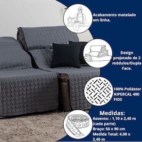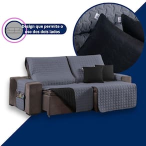 Kit Capa Protetora Sofá Retrátil 2,20m Shield Dupla Face + Almofadas Variação: Cinza e Preto Bem-vindo a à Atual Ecommerce - há mais de 4 anos oferecendo conforto e estilo para o seu lar Se você busca proteger seu sofá retrátil com sofisticação e praticidade, o Kit Capa Protetora de Sofá Retrátil Shield 2,20m Dupla Face com Almofadas é a escolha perfeita. Feito com tecido resistente, design moderno e caimento impecável, ele transforma sua sala com elegância. Seu sofá merece proteção e beleza em um só produto. Manchas, pelos, sujeiras e desgaste são desafios do dia a dia - especialmente com pets ou crianças. Com o Protetor Shield, você preserva a aparência do seu sofá e ainda renova a decoração da sua casa. Com dupla face e almofadas inclusas, o visual da sala muda conforme seu gosto. O que dizem nossos clientes satisfeitos: protege e valoriza o sofá. A cor dupla face me permite variar sempre. muito bonito e de ótima qualidade. Meu sofá parece novo. fácil de colocar e os bolsos são muito úteis para o controle e celular. Especificações Técnicas: Modelo: Shield Retrátil com Almofadas Para sofás retráteis com assento de até 2,20 metros Medidas Aproximadas: 2 partes de 1,10m x 2,40m assento retrátil 2 braços: 50cm x 90cm cada Medida total com os braços: 4,00m x 2,40m 2 Capas de Almofada: 45cm x 45cm Material: Tecido superior/inferior: 100% Poliéster - Hipercal 400 Fios Enchimento: 100% Poliéster Acabamento em viés e amarras para fixação Extras: Bolsos laterais funcionais Design: Matelado e Dupla Face Produto com 3 meses de contra defeitos de fabricação. Compre com tranquilidade e segurança Proteja, renove e transforme seu sofá com o Kit Shield. Estoques limitados Garanta o seu agora e valorize o ambiente da sua casa com um produto funcional, elegante e de qualidade superior. Agradecemos sua visita à Atual Ecommerce. Conte com a gente para cuidar do seu lar com carinho Marca: Não Informado Ean: 7896756890858