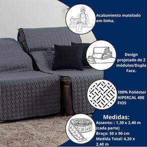 Kit Capa Protetora Sofá Retrátil 2,40m Shield Dupla Face + Almofadas Variação: Cinza e Preto Bem-vindo a à Atual Ecommerce - mais de 4 anos entregando conforto e estilo para o seu lar Se você tem um sofá retrátil grande e quer protegê-lo com praticidade e bom gosto, conheça o nosso Kit Capa Protetora de Sofá Retrátil SHIELD 2,40m Dupla Face com Almofadas. Ideal para quem valoriza elegância, funcionalidade e conforto no dia a dia. Proteja o que você mais ama com estilo. Seu sofá está sempre exposto a sujeiras, líquidos, pelos ou desgaste O Protetor SHIELD resolve isso com sofisticação Além de proteger, ele renova seu ambiente com design matelado moderno e tecido resistente de Hipercal 400 fios. E o melhor: é dupla face Clientes que já compraram aprovaram: O produto é lindo e super prático. Meu sofá grande ficou como novo protege bem, tem caimento excelente e ainda veio com almofadas fácil de colocar, de lavar e deixa a sala muito mais bonita. Especificações Técnicas: Modelo: SHIELD Retrátil com Almofadas Para sofás retráteis com assento de até 2,40 metros Kit com 3 peças: 01 Capa retrátil 2,40m 2 partes de 1,20 x 2,40m 02 Capas de Almofada Mateladas com zíper 45 x 45 cm Braços: 50 x 90 cm cada Material: Tecido superior/inferior: 100% Poliéster - Hipercal 400 Fios Enchimento: 100% Poliéster Extras: Amarras fixadoras, bolsos laterais, acabamento em viés Dupla Face: permite variar a decoração com duas opções de cor de 3 meses contra defeitos de fabricação, para sua segurança e tranquilidade Seu sofá merece o melhor. Seu lar merece o SHIELD. Não perca limitado para esse tamanho especial de 2,40m. Adquira agora e transforme sua sala com funcionalidade e elegância. Agradecemos sua visita à nossa loja. Conte com a Atual Ecommerce para cuidar da sua casa com carinho. Marca: Não Informado