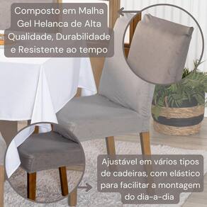 Kit Capas De Cadeira Jantar Lisa Ajustável Com Elástico 04 Peças - Protetora Moderna Para Cozinha Malha Gel Helanca Cor Cinza
