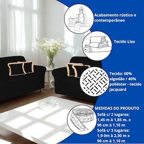 Kit Capas Para Sofá 2 e 3 Lugares Adere Malha Gel Liso Econômico Variação: Preto Seja bem-vindo a à Atual Ecommerce - há mais de 4 anos trazendo praticidade e estilo para sua casa Se você deseja proteger seu sofá com beleza, economia e facilidade, conheça o Kit 2 Peças Capa Protetora de Sofá Adere Liso Face Única em Malha Gel. Uma solução simples e funcional para o dia a dia Preserve seus estofados e renove seu ambiente com um toque moderno. O tempo e o uso diário podem desgastar o sofá, deixando a sala com aspecto cansado. Com o Kit Adere, você protege seus sofás de 2 e 3 lugares e ainda transforma a decoração, sem precisar trocar o móvel. Veja o que nossos clientes estão dizendo: as capas são lindas e ficaram certinhas nos meus sofás. adorei a malha gel, muito confortável e fácil de colocar. O kit vale muito a pena. Protege e dá outra cara pra sala. Especificações Técnicas: Produto: Kit Capa Protetora para Sofá Adere Liso - Face Única Quantidade: 2 Peças Modelos inclusos: 1 Capa para sofá 2 lugares: 1,45m a 1,85m x 90cm a 1,10m 1 Capa para sofá 3 lugares: 1,90m a 2,30m x 90cm a 1,10m Material: Malha Gel Lisa - 100% Poliéster Características: Face única Ótimo ajuste para modelos padrão Fácil de lavar e conservar Tecido leve, elástico e confortável Produto com 3 meses de contra defeitos de fabricação. Compre com segurança e tranquilidade. Valorize sua casa com economia e estilo. Adquira agora seu Kit Adere Liso - proteção, conforto e visual renovado por um excelente custo-benefício. limitado Agradecemos a sua visita à Atual Ecommerce. Conte conosco para transformar o seu lar. Marca: Não Informado