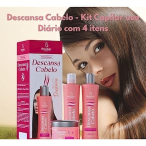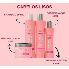 Descubra o Kit Capilar Descansa Cabelo ação Antifrizz, especialmente formulado para cabelos lisos que precisam de cuidado diário e proteção contra o frizz. Com uma composição , este kit reúne 4 itens essenciais que promovem hidratação profunda, redução do volume indesejado e um acabamento sedoso e alinhado. Ideal para quem busca praticidade e resultados duradouros no controle do frizz, proporcionando fios maleáveis, com brilho natural e toque aveludado.