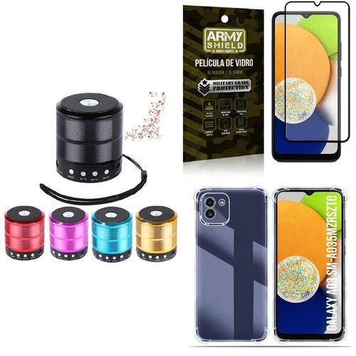 Kit Mini Som Bluetooth + Capa Anti Impacto + Película Vidro 3D - Armyshield