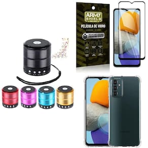 Kit Mini Som Bluetooth + Capa Anti Impacto + Película Vidro 3D - ArmyshieldMini Som BluetoothVocê pode reproduzir áudio via Bluetooth através de qualquer dispositivo bluethooth, como: Tablets, Ipads, Notebooks, smartphones, ipods, etc. Controla o volume e troca de músicas, diretamente da caixa de som.Características:- Compatível com todos os dispositivos Bluetooth: Todos Iphones, Ipads, Tablets, Smartphones, Androids, Windows, Celulares, Notebooks, Adaptadores Usb, etc...- Produto portátil com som de 5 Watts- Radio Fm- Entrada para microfone, para falar no celular pela caixa de som, via bluethooth- Atende e encerra chamadas telefônicas, Faz ligação para último número- Controle de volume- Reproduz MP3 através de micro Sd e Pen drive- Troca de músicas pela caixa de som- Entrada line in para reprodução via cabo- Perfeito para uso em trânsito, viagens, casa, férias, campo, em toda a parteInstruções de Uso:- Ligue a Mini Caixa de Som normalmente através da chave na parte inferiorRádio Fm- Pressione o botão Mode até ouvir a opção Fm- Conecte o cabo auxiliar para ter acesso a antena da Mini Caixa de Som- Pressione os botões de avançar ou retornar para chegar a estação de rádio desejadaConexão P2- Pressione o botão Mode novamente para ter acesso a qualquer dispositivo com conexão P2Bluetooth- Pressione o botão Mode novamente para ligar o bluetooth e parear com o dispositivo desejado.Podendo trocar de músicas e alterar o volume tanto no celular, quanto na própria Mini Caixa de Som- É possível também atender ligações do celular conectado pela própria Mini Caixa de Som.Ao receber a chamada, pressione o botão PlayA Capa Anti Impacto protege contra eventuais quedas, arranhões além de dar uma sensação de segurança na pegada do seu celular. Sendo 100% transparente mantem a originalidade e a beleza natural do seu aparelho.Película de Vidro 3D Blindada - ArmyShield, traz o que há de mais moderno quando se trata de Proteção de telas, com uma espessura de 0,33mm garante total proteção contra riscos e quedas e trincos.Proteção para seu celular é com a Armyshield