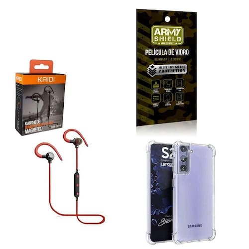 Fone de Ouvido Esportivo sem fio Magnético e com gancho para esportes KD-904Se você procura um fone para as atividades diárias, exercícios e movimento o fone sem fio KD-904 é a escolha idealContém Tons graves , profundos e complexos. Um verdadeiro som de qualidadeControle a reprodução de músicas e vídeos direto do botão de controle.Atenda e desligue chamadas, microfone HD in line embutido com controle de faixas.Com imã embutido que não atrapalha e não fica caindo da orelha, produto de design intra-auricular projetado para ser confortável ao ouvido.Isolamento de ruídos sem vazamento de som. O fone utiliza uma tecnologia aeronáutica de redução de ruído. Isola interferência de ruído externo. Mergulhe no mundo da músicaEspecificaçãoVersão: V5.0Tempo de espera: 200hTempo de conversação: 6hTempo de reprodução de música: 5hTempo de carregamento: 1hFrequências RF: 2,4GHzFaixa de frequência: 2.402G-2.480GTemperatura ambiente: -20/ +60CDistância de transmissão: 10mEspecificação do DriverUnidade do driver: 10mmSensibilidade: 90dB +-3dBImpedância: 32 +- 15%Resposta de frequência: 20-20000HzComprimento do cabo: 600mm-----Película de Vidro 3D Blindada - Armyshield Com Kit de InstalaçãoA película de vidro 3D para celular é um produto de alta qualidade que oferece proteção e estilo para o seu dispositivo móvel. Feita de vidro temperado de alta resistência, a película é projetada para se encaixar perfeitamente na tela do seu celular, proporcionando uma cobertura completa e proteção contra arranhões, rachaduras e outros danos. ------- Capinha Silicone Anti Impacto Anti Shock Transparente - ArmyshieldA capa de celular antishock é um produto de alta qualidade que oferece proteção e estilo para o seu dispositivo móvel. Feita de material de TPU poliuretano termoplástico de alta resistência, a capa é projetada para absorver impactos e proteger o seu celular contra quedas, arranhões e outros danos.Somos especialistas em Acessórios para celular há mais de 7 anos Antes de comprar verifique se o modelo do seu celular é o mesmo do produto comprado. Agradecemos a Preferência