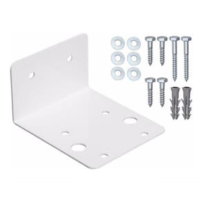 O produto é confeccionado em aço e pintado de branco o Suporte de metal BBI. Também acompanha conjunto de parafusos e buchas.