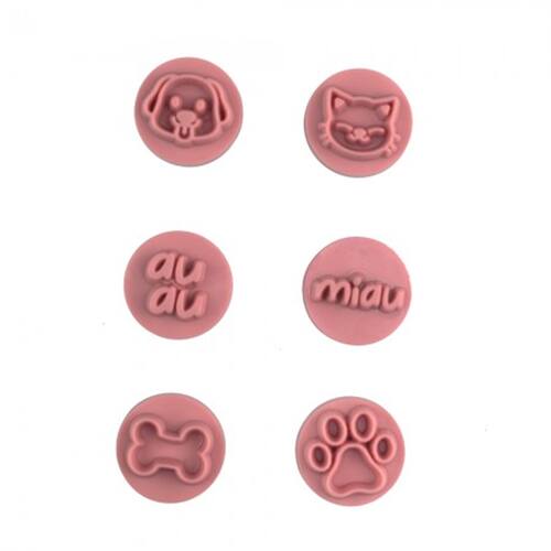 Kit carimbos pets (2cm). São seis opções de carimbos para tornar suas decorações mais divertidas, acompanha um cabo que encaixa e facilita no momento de utilizar. Aplique de forma rápida e prática em seus doces, experimente carimbar com pó ou glitter e destaque ainda mais os desenhos. Eleve o nível de seus trabalhos, lembrancinhas, decorações e surpreenda seus clientes!