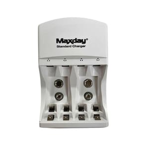 Pilhas: Pilhas de Niquel 1.2v AA Recarregáveis Características: Led vermelho indicando o processo de carga Input: AC100-240V 50/60Hz. Carrega 4 pilhas AA Ou 4 pilhas AAA Ou 2 bateria 9v Pilhas Recarregáveis Ni-MH 2800mAh 1.2v
