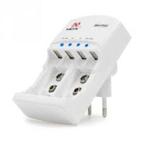 Carregador de pilhas rápido MOX Bivolt, com carregamento super-rápido de até 4 pilhas AA. É bivolt automático e possui 4 canais de cargas independentes.