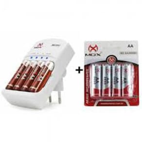 Kit Carregador Pilhas Mox 4 Pilhas 2600Mah Total 8 Pilhas AA, carregador super rápido com desligamento automático para não danificar a vida útil de suas pilhas. Acompanha 8 pilhas AA 2600 mah de alta qualidade recarregáveis.