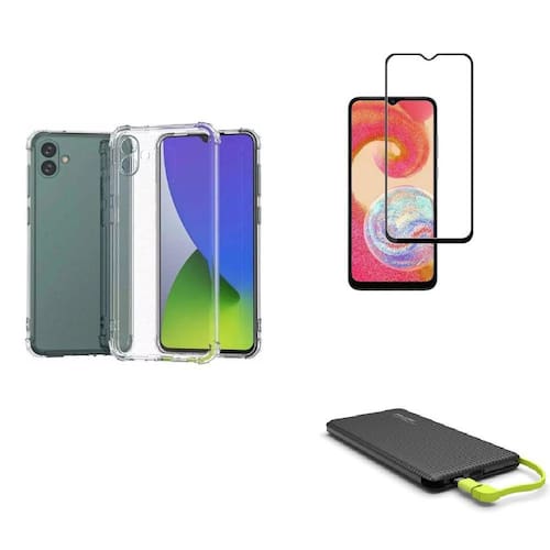 Kit Carregador Portátil Samsung Galaxy A04s + Capa + Película De Vidro 3D