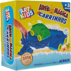 Kit com 1 pote de Areia Mágica e 2 moldes de carrinhos.