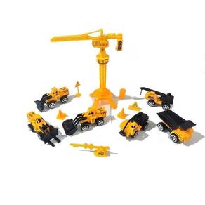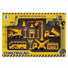 Kit Carrinhos Trucks de Construção Fricção Com Acessórios de Trânsito Placas Cones Posto Kit 15 Pçs