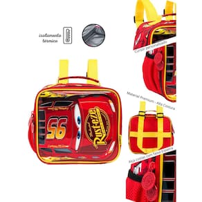 Inspirado na energia e velocidade do relâmpago mcqueen, esse kit é perfeito para os pequenos que vivem no modo turbo combinando praticidade, conforto e o charme do universo disney pixar, ela é ideal para acompanhar os dias de aula ou viagens com muita personalidade.