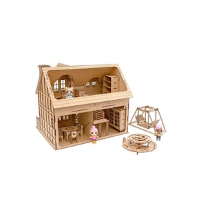 Confeccionada em mdf de 3 mm,a casinha de bonecas é composta por diversas peças,as quais se encaixam sutilmente devido a precisão de corte dos mesmos. acompanha kit de móveis