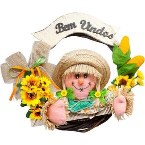 Transforme sua Festa Junina com charme e alegria com essa ;Guirlanda de espantalho caipira decorativo de 40cm! Ideal para enfeitar paredes, entradas, painéis e criar aquele clima típico do arraiá!