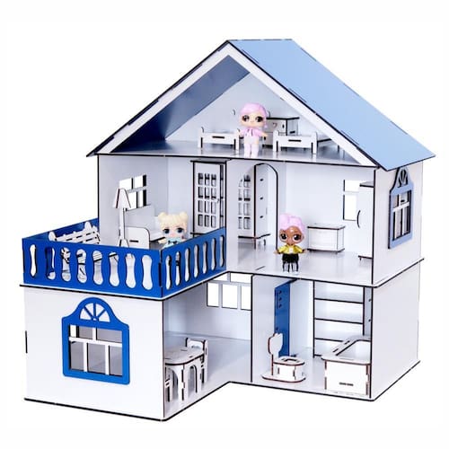Casinha de bonecas escalapolly modelo july pintura lazuli com 21 móveis