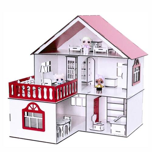 Confeccionada em mdf de 3 mm,a casinha de bonecas é compostapor diversas peças,as quais se encaixam sutilmente devido a precisão de cortedos mesmos. Acompanha móveis. Não acompanha bonecas e carrinho.
