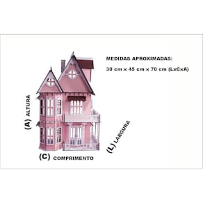 Casinha de bonecas escalapolly modelo mirian estilo princesa com 21 móveis cor brancoConfeccionada em mdf de 3 mm,a casinha de bonecas é compostapor diversas peças,as quais se encaixam sutilmente devido a precisão de cortedos mesmos. Acompanha móveis.Dimensões aprox : 30 x 40 x 70cm largura x comprimento x altura Conteúdo do kit moveis : Cozinha : 4 cadeiras;mesa; fogão; geladeira; pia; armárioSala : 2 sofáspequenos; sofá grande; mesa de centro; estante; livreiroSala de estar : piano;banquinho; armárioQuarto : cama decasal; cômoda; penteadeiraNeste produto, há necessidade de colagem. O produto é montadoatravés de feixes de encaixes, e necessariamente precisa ser colado com colainstatânea tipo superbonder, ou cascorez, cola branca ou qualquer cola indicadapara mdf. Não indicamos cola quente.Material de fabricação : mdf de reflorestamento 3mm tipo pinus, cortadoatravés da tecnologia de corte a laser.- mais leve e prático de ser locomovido.- maior praticidade na montagem.- maior durabilidade.- maior precisão nos encaixes.Enviamos o produto desmontado e embalado em plástico bolha,garantindo que chegue em perfeito estado em sua residência.Comprando conosco, você também tem a garantia total doproduto. Caso haja danos durante o transporte, na montagem, ou na utilização domesmo, enviaremos sem nenhum custo adicional as peças de reposição para seuproduto.Todas as informações divulgadas são de responsabilidade dofabricante/fornecedor.Imagens meramente ilustrativas.Indicado para crianças à partir de 5 anos. Produto artesanal.Características do produtoTamanho : 30 x 40 x 70 cmEspessura do material : mdf3mm com pinturaCompatibilidade : bonecas tipo pollyINM:00000Homologação Inmetro: IP-BRI-2513/2021-09
