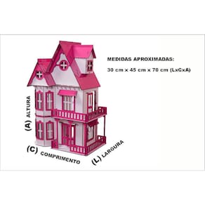 Confeccionada em mdf de 3 mm,a casinha de bonecas é compostapor diversas peças,as quais se encaixam sutilmente devido a precisão de cortedos mesmos. Acompanha móveis.