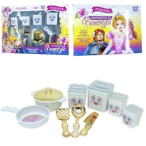 --------------------------------------------------------------------------------------------- Tamanhos dos potes de mantimentos arroz, feijão, açúcar e café: - café: 4,5 cm de altura x 4,5 cm de largura - açucar: 5,5 cm de altura x 5,5 cm de largura - feijão: 6 cm de altura x 6 cm de largura - arroz: 7 cm de altura x 7 cm de largura - tamanho das panelinhas: 12 cm de largura x 5 cm de altura - 3 talheres para cozinhar
