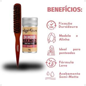 Kit Cera Fixadora de Cabelo Edge Fixer Kiss New York Pêssego e Escova para Acabamento e Penteado Proart