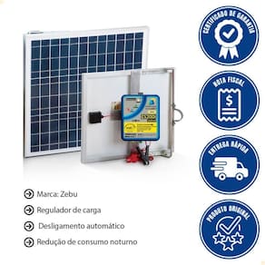 - O Kit Cerca Elétrica Solar Zebu ZS200i reúne potência, autonomia e tecnologia inteligente: funciona com energia solar, oferece alta durabilidade e mantém sua área protegida 24 horas por dia, mesmo em dias nublados.