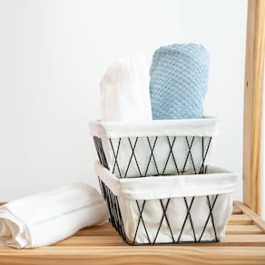 Esse é o KIT CESTO ARAMADO COM FORRO MULTIUSO 15CM E 18 CM - OIKOSEsse Kit contém:1 CESTO ARAMADO PEQUENO COM FORRO 15CM - OIKOS1 CESTO ARAMADO MÉDIO COM FORRO 18CM – OIKOS