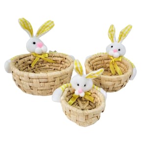 Kit Cesto Com Coelho Da Pascoa Aperitivo Mesa Posta Amarelo Sofisticação Rústica: Conjunto de Cestas de Fibra Natural