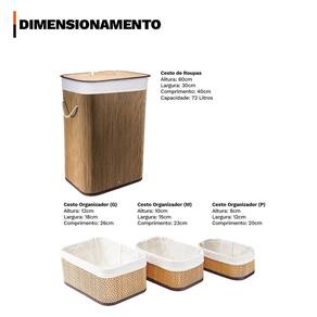 Kit Cestos Bambu 3 Organizadores E 1 Cesto De Roupa Suja
