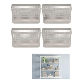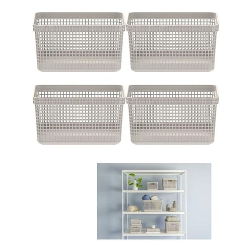 Kit Cestos Organizadores Caixa Organizadora Brinquedos 8l Cor: Bege F6161 MAPLE DECOR DESCRIÇÃO Kit 4 Cestos Organizadores Multiuso 8 Litros Grid Organização otimização Decoração durabilidade Os cestos organizadores são funcionais e multiuso produzidos em plástico para organização e otimização de ambientes como cozinhas, lavanderias, closets, banheiros, escritórios, refeitórios, despensas, lojas. Possui paredes vazadas e pegas para facilitar o manuseio. Ideal para organizar alimentos, potes, ferramentas, material escolar, material de escritório, brinquedos, produtos de limpeza e utilidades domesticas em geral, além de ser muito funcional para decoração de ambientes como, sala, cozinha, quarto, lavabo, área de serviço e banheiro. Com estes cestos você pode deixar a sua criatividade fluir, organizar e decorar ao mesmo tempo. Material: Matéria prima é proveniente de resíduos coletados do litoral do brasil com o propósito de evitar que este plástico chegue até o mar ou rios . Produto 100% produzido com plástico pós-consumo. Cores: Preto, Cinza, Branco, Bege e Azul Glacial. Conteúdo: 4 Cestos de 8L - C 22,5cm x L 28,5cm x A 15,2cm