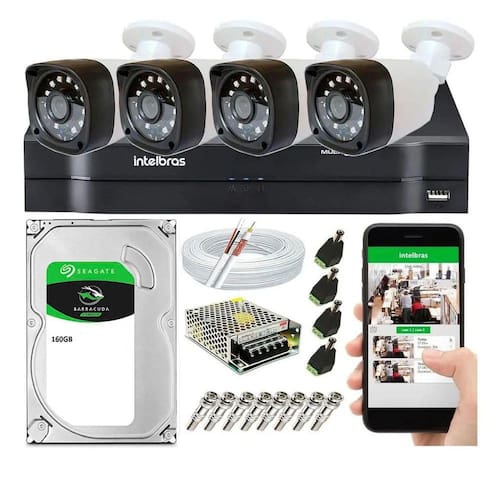 Kit Cftv 4 Câmeras Segurança Hd 720p Dvr Mhdx Intelbras