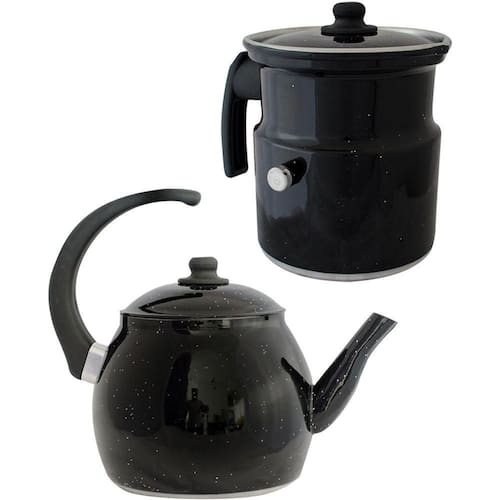 Kit Chaleira E Leiteira Gulê Alumínio 2 Peças Preta Kit Chaleira E Leiteira Gulê Alumínio 2 Peças Preta - Dica do chefe. Após o uso caso surja machas no interior da tampa ou da panela, basta ferver água com limão e vinagre branco para a remoção.