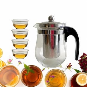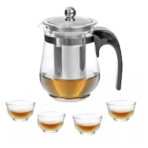 Conjunto para Chá de Vidro com Bule, Infusor Inox e 4 Mini Xícaras