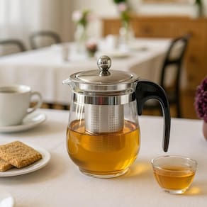 O bule acompanha infusor de aço inoxidável, ideal para folhas, ervas e especiarias, garantindo sabor, aroma e uma infusão limpa, sem resíduos. As mini xícaras completam o jogo, tornando o ritual ainda mais sofisticado.