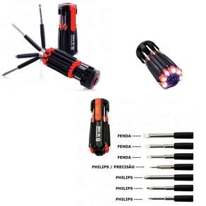 Kit Chave de Fenda Multiuso 8 em 1 com Lanterna Kit Chave de Fenda Multiuso 8 em 1 com Lanterna LED Aplicação: Perfeito para reparos rápidos e manutenção em casa, no carro ou em pequenos projetos. Este kit multifuncional reúne as chaves mais utilizadas em um único item portátil e prático, ideal para ter sempre à mão.