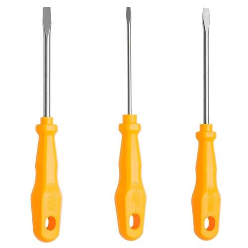 Sua ponta chata é ideal para uma ampla variedade de aplicações, oferecendo precisão e firmeza em cada movimento. As hastes das chaves de fenda são submetidas a rigorosos testes em máquinas especializadas, garantindo um equilíbrio perfeito entre resistência mecânica e dureza, essenciais para um desempenho confiável.