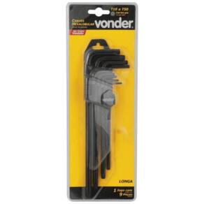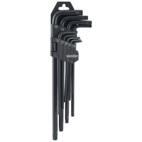 Jogo de chaves hexalobular da Vonder é indicado para fixar e soltar parafusos hexalobular. Série: longa. Produzido em aço cromo vanádio, proporcionando maior resistência e durabilidade. Possui ainda furo guia, que confere encaixe perfeito em parafusos que tenham este guia. Pode ser utilizada normalmente também em parafusos que não tenham este guia. Descrição Técnica: Material do corpo da chave: Aço cromo vanádio Acabamento da Chave: Fosfatizado preto Conteúdo da Embalagem: 1 Jogo de chaves hexalobular longas, composto por um suporte plástico com 9 peças, sendo: T10 - T15 - T20 - T25 - T27 - T30 - T40 - T45 e T50 Garantia: 90 dias contra defeito de Fabricação Ean: 7893946377205