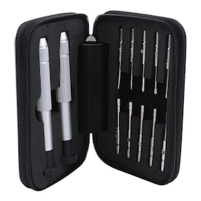 O Kit Chave Precisão Celular Eletrônico Relojoeiro Joalheiro é o acessório ideal para quem precisa realizar trabalhos de precisão em óculos, relógios, celulares e afins. Composto por 2 bases, 10 ponteiras e 1 estojo metálico com zíper, o kit oferece alta durabilidade, leveza e facilidade na remoção de parafusos.