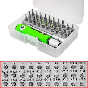 O Kit 32 em 1 é ideal para reparo de celulares, notebooks, tablets,