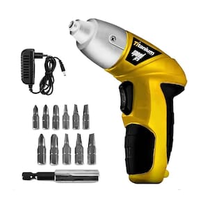 - Marca: Titanium - Modelo: 7184 - Voltagem: 4.8V - Carregamento: 3 a 5horas - Botão de reversão: dois sentidos de giro - Velocidade sem carga: 200 rpm - Bateria: 1,5 Ah lithium - Velocidade: 180RPM - Força de Torque: 3,5 NM - Encaixe sextavado: 1/4' - Tipo de bateria: Lithium - Velocidade variável e reversível: Sim - Dimensões do produto sem embalagem - Altura: 18 cm - Largura: 5 cm - Comprimento: 13 cm - Peso: 230 g - Dimensões do produto com embalagem - Altura: 18 cm - Largura: 5 cm - Comprimento: 20 cm - Peso: 400g