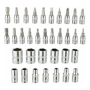 Lista de Embalagem: 6 Flores Hexs: T10/T15/T20/T25/T30/T40 6 Cabeça Plana Interna Hex: H3/H4/H5/H6/H7/H8 3 Palavras A: SL4/SL5.5/SL7 3 Cruzes: PH1/PH2/PH3 3 M Palavras: PZ1/PZ2/PZ3 13 1/soquetes DR de 4 : 4-4.5-5-5.5-6-7-8-9-10-11-12-13-14MM 3 Hex Chaves de chave: 1.5/2.0/2.5MM 1 1/4 DR Universal Joint 1 1/4 X2 Barra de extensão 1 1/4 X4 Barra de extensão 1 1/4 X6 Extensão flexível 1 1/4 DR Barra deslizante T 1 1/4 Alça de catraca rápida 1 6 Alça giratória 1 Adaptador de bit 1 Caixa de sopro Ean: 7898441159752
