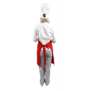 Kit chef cozinha feminino Dolmã manga 3/4 + Avental vermelho + Chapéu branco - G - Branco